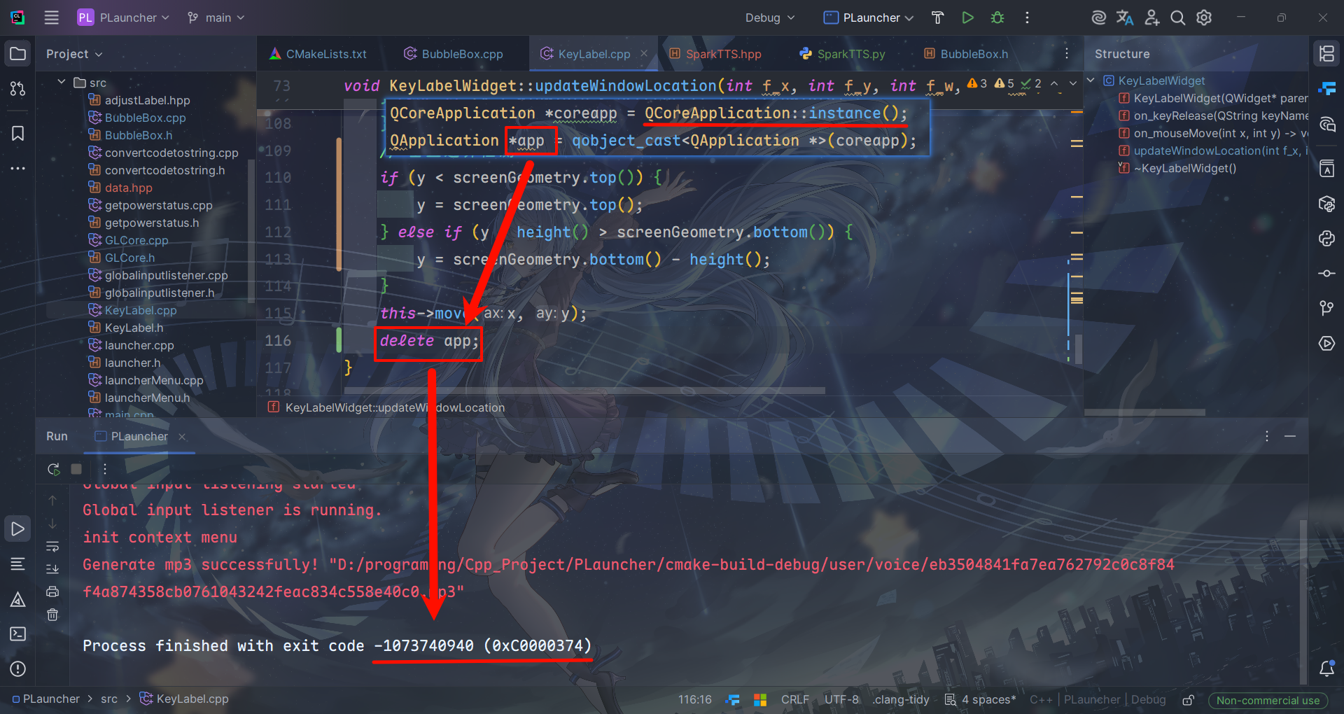我使用指针获取了当前运行的主进程的内存地址,然后直接使用delete删除了主进程的内存,这就导致了程序崩溃,因为主进程的内存已经被释放掉了,所以程序无法正常运行。