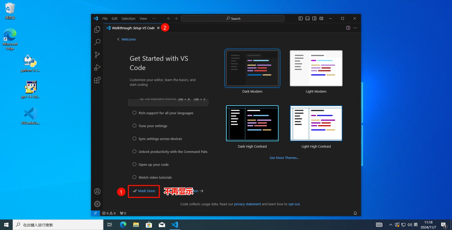 你的 vscode 可能会弹出以下内容,如果没有弹出这个通知,也没有关系。