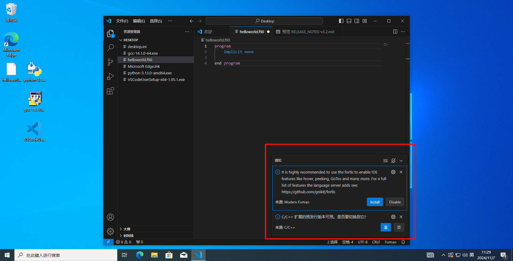 这是我出的第2个关于Fortran安装的教程,由于上一个方法对储存空间的要求比较高,并且我个人也不太喜欢用 VS ,比如他一个工程里面只能创建一个文件(大概)。反正我就是菜,我就想搞一个比较方便的,而且有那种代码高亮的。写这种教程的人不止我一个,大家可以参考更优秀的。