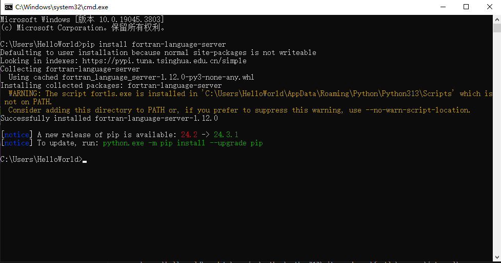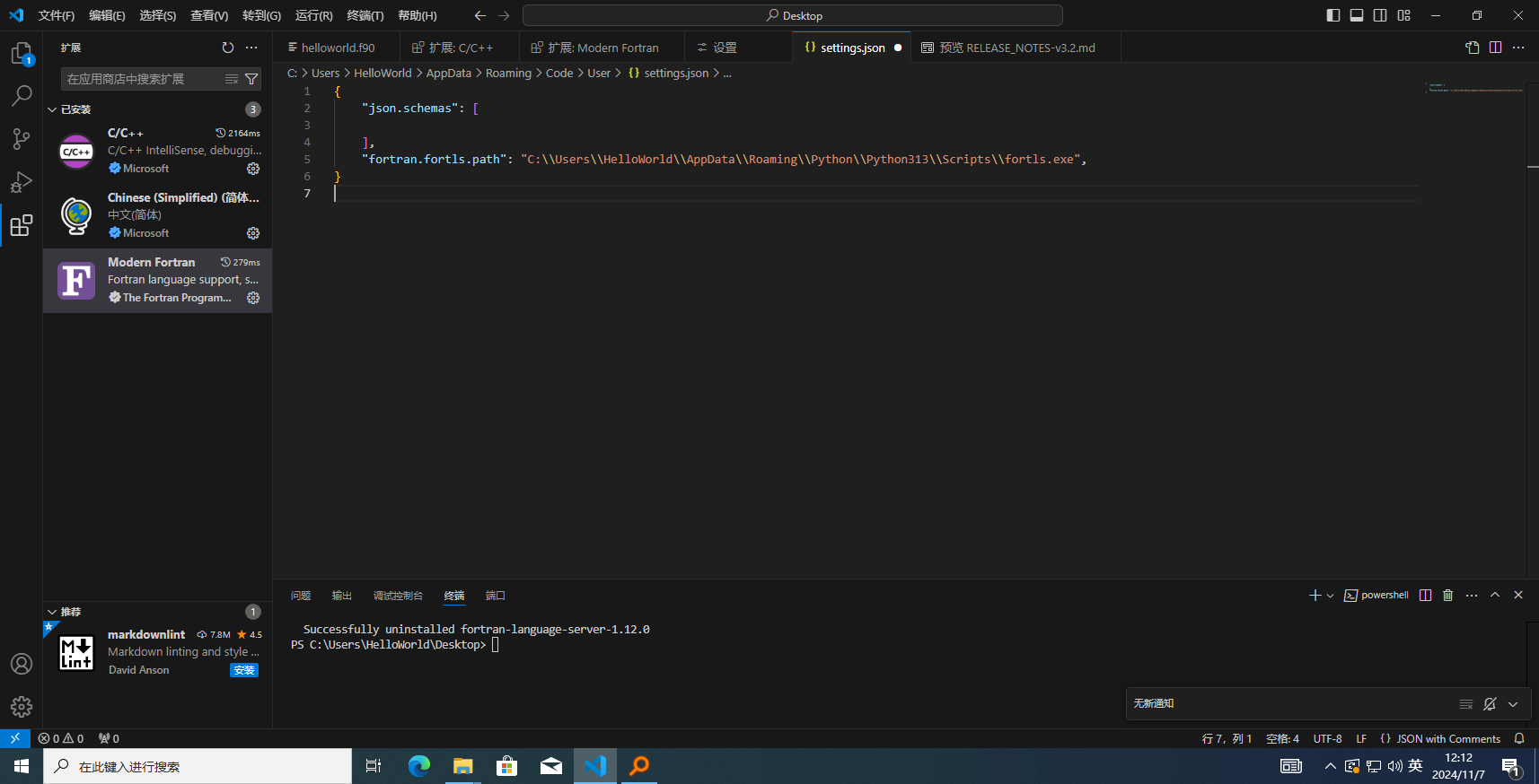 "fortran.fortls.path": "C:\\Users\\HelloWorld\\AppData\\Roaming\\Python\\Python313\\Scripts\\fortls.exe",